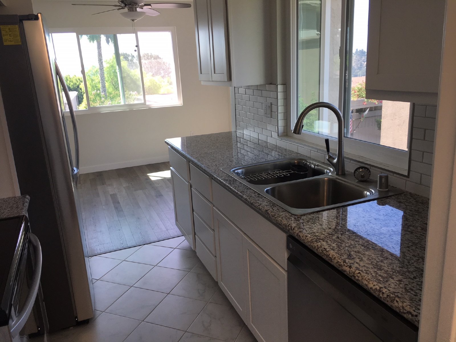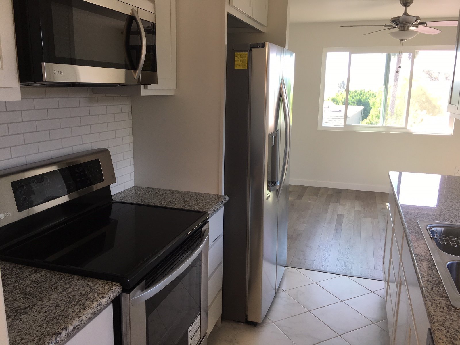 New Stainless LG Appliances: High-quality refrigerator, stove/oven, microwave, and dishwasher.